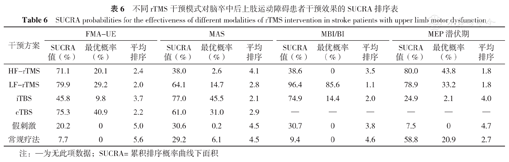 不同rTMS干预模式对脑卒中后上肢运动障碍患者干预效果的SUCRA排序表