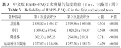 中文版HAHS-PAQ和ActiGraph wGT3X-BT加速度计测量值的相关性(