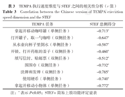 Correlation between the Chinese version of TEMPA execution speed dimension and the STEF