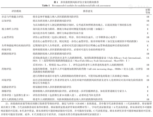 | 老年人跌倒观点评估 | 将老年人对跌倒原因、风险和预防的看法纳入多因素跌倒风险评估 | 1B |