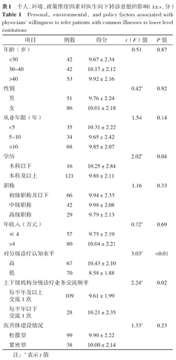 Personal,environmental,and policy factors associated with physicians' willingness to refer patients with common illnesses to lower level institutions