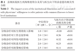 县级医院医生机构维度得分及其与医生向下转诊意愿的相关性分析