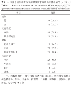 Basic information of the providers in the survey of TCM "preventive treatment of disease" service in community elderly care facilities