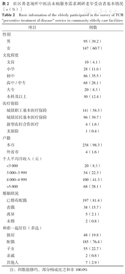 Basic information of the elderly participated in the survey of TCM "preventive treatment of disease" service in community elderly care facilities