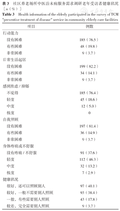 Health information of the elderly participated in the survey of TCM "preventive treatment of disease" service in community elderly care facilities