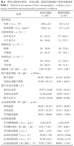 研究对象基本特征、氧化应激、能量代谢和精子质量参数结果
