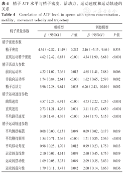 Correlation of ATP level in sperm with sperm concentration,motility,movement velocity and trajectory