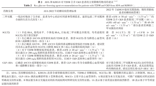 | 药物分类 | ADA 2022年的糖尿病管理标准 | 2022年《KDIGO临床实践指南:慢性肾脏病患者的糖尿病管理》 |