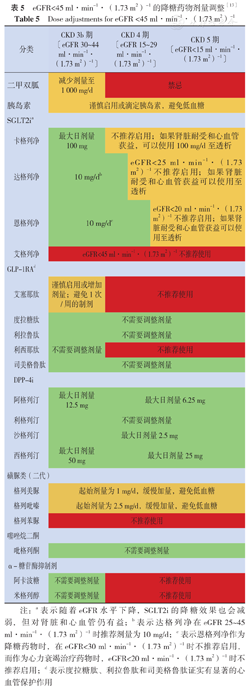 eGFR<45 ml·min-1·(1.73 m2)-1的降糖药物剂量调整[13]