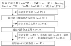 纳入标准:(1)符合美国医学研究所(Institute of Medicine,IOM)1990年或2011年的指南定义[1, 13],即指南是根据特定的临床情况,系统制订出的帮助临床医生和患者做出恰当处理的推荐意见,或指南是针对临床问题,基于系统评价的证据,在比较不同干预措施利弊的基础上形成的,旨在为患者提供最佳医疗服务的推荐意见;(2)通过题目和指南内容可明确判断应用环境仅为基层医疗卫生机构[14],如应用环境包括基层医疗卫生机构、社区卫生服务中心(站)、乡镇卫生院、村卫生室、医务室、门诊部和诊所等,或使用者为家庭医生、全科医生等基层医务人员;(3)考虑到基层指南的适应性,仅纳入由中国大陆相关机构主导发布的指南[10];(4)存在更新版指南时,同时纳入更新版和旧版指南。排除标准:(1)摘要、评论和指南总结;(2)指南解读或翻译。