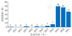 在国家卫生健康委员会官网未检索到相关信息,在CNKI等4个数据库中共检索到6 732篇文献,最终纳入150部基层指南,筛选过程见图1。我国最早的基层指南发表于2010年,此后年发表数量逐渐增加。从2019年开始指南发表速度加快,发表集中在2019—2021年〔134 (89.3%)〕,见图2。纳入的150部基层指南中,84部(56.0%)有多个版本,8部(5.3%)为多期刊发表,12部(8.0%)有资金支持,仅2部(1.33%)为更新版。发表期刊主要为《中华全科医师杂志》〔122(81.3%)〕。