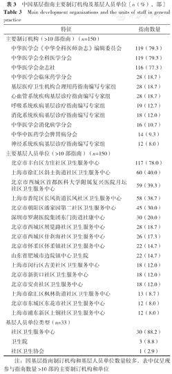 中国基层指南主要制订机构及基层人员单位〔n (%),部〕