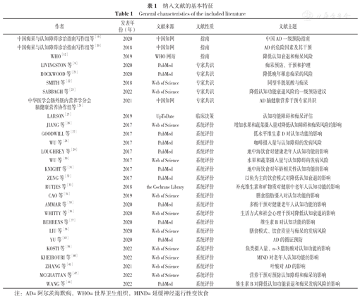 | KHEIROURI等[40] | 2022 | Web of Science | 系统评价 | MIND对老年人认知功能的影响 |