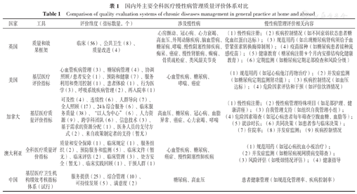 国内外主要全科医疗慢性病管理质量评价体系对比