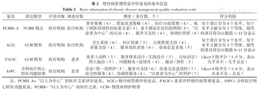 注:PCMH-A="以人为中心"的医疗之家评价量表,ACIC=慢性病管理评价量表,PACIC=患者评价慢性病管理量表,ASPC=全科医疗核心特征功能量表,PCMH="以人为中心"的医疗之家,CCM=慢性病照护模型