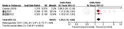 3项[8,12,13]研究报道Hoehn-Yahr分级对PD患者疼痛的影响,异质性检验结果显示I2=50%、P=0.14,故采用固定效应模型进行Meta分析,结果显示Hoehn-Yahr分级高是PD患者发生疼痛的危险因素〔OR=2.28,95%CI(1.28,4.04),P=0.005〕,见图6。