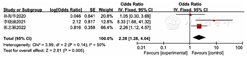 | 性别 | 7 | 不严重 | 严重b | 不严重 | 不严重 | 无 | 1 283 | 3.73(1.75,7.96) | 中 |