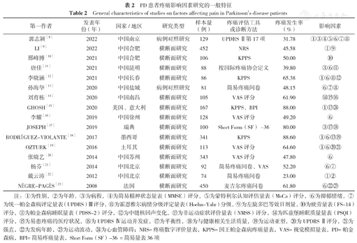 章雨桐,王秋琴,徐语晨,等.帕金森病患者疼痛影响因素的系统评价[J].中国全科医学,2023,26(14):1766-1774.[www.chinagp.net]