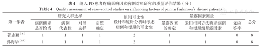 Quality assessment of case-control studies on influencing factors of pain in Parkinson's disease patients