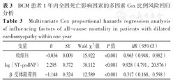 DCM患者1年内全因死亡影响因素的多因素Cox比例风险回归分析