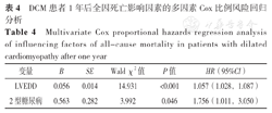 DCM患者1年后全因死亡影响因素的多因素Cox比例风险回归分析