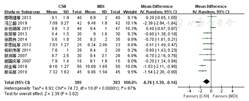 | 空腹血糖<7.8 mmol/L;餐后2 h血糖<11.1 mmol/L | 2[15,19] | -4.99(-8.80,-1.18) | 0.010 |