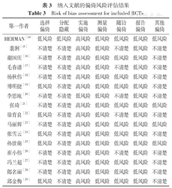 | 傅明捷[19] | 低风险 | 不清楚 | 高风险 | 低风险 | 低风险 | 低风险 | 不清楚 |