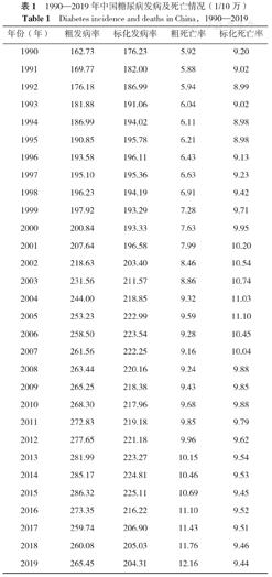 1990—2019年中国糖尿病疾病负担情况(1/10万)