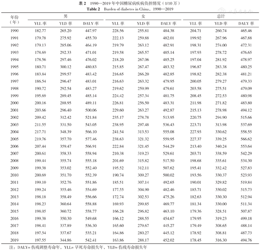 梁珊珊,周智华,李成程,等. 1990—2019年中国糖尿病疾病负担及发病预测分析[J].中国全科医学,2023,26(16):2013-2019.[www.chinagp.net]