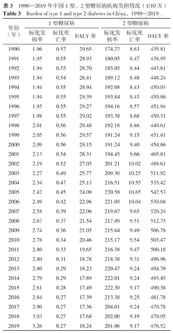 Burden of type 1 and type 2 diabetes in China,1990—2019