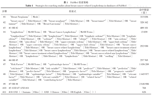 Strategies for searching studies about breast cancer-related lymphedema in databases of PubMed