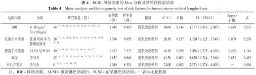 Meta-analysis and heterogeneity test of risk factors for breast cancer-related lymphedema