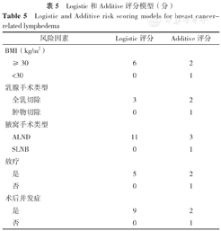 Logistic and Additive risk scoring models for breast cancer-related lymphedema