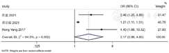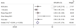 | 术前临床T分期 | [11,17,22] | 随机效应模型 | 2.17(1.06,4.42) | 0.033 | 固定效应模型 | 1.95(1.41,2.71) | <0.001 |