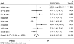 | 术前临床T分期 | 2[11,22] | 43.9 | 0.182 | 固定效应模型 | 4.57(2.57,8.12) | <0.001 |