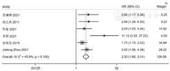 | I2值(%) | P值 | OR(95%CI) | P值 | |||