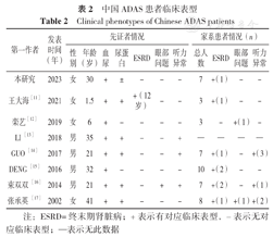 目前,有关ADAS表型的数据相对稀少,检索中国知网、维普网、万方数据知识服务平台、PubMed等数据库共获取7篇中国人ADAS的文献报道[11,12,13,14,15,16,17],其中中文4篇[11,12,16,17],外文3篇[13,14,15]。本研究ADAS患者与文献报道的中国ADAS患者临床表型见表2。