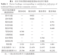 社区中医药服务满意度指标对应因子载荷