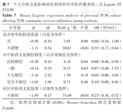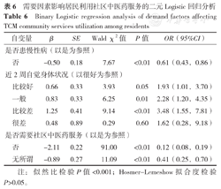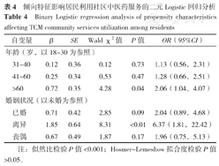 倾向特征影响居民利用社区中医药服务的二元Logistic回归分析