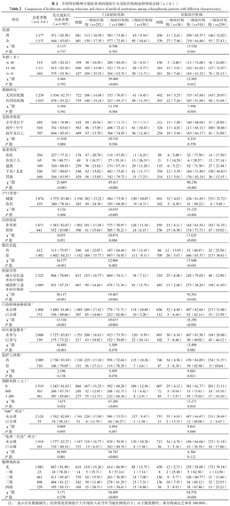| 无 | 1 083 | 887(81.90) | 618 | 119(19.26) | 414(66.99) | 85(13.75) | 439 | 12(2.73) | 255(58.09) | 172(39.18) |