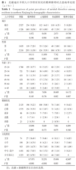 Comparison of point prevalence of mental disorders among residents in northern Xinjiang by demographic characteristics