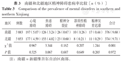Comparison of the prevalence of mental disorders in southern and northern Xinjiang