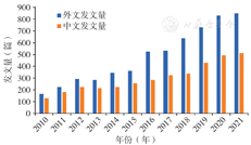 2010—2021年老年多重慢病领域中外文献类团数量及主题名称