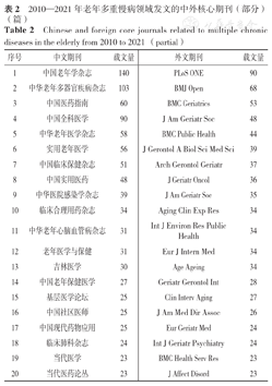 Chinese and foreign core journals related to multiple chronic diseases in the elderly from 2010 to 2021 (partial)