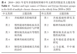 Number and topic names of Chinese and foreign literature groups in the field of multiple chronic diseases in the elderly from 2010 to 2021