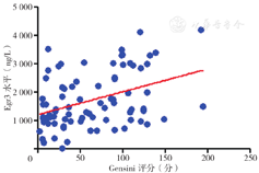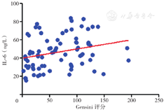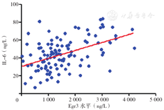 Egr3、IL-6水平与Gensini评分呈正相关(rs=0.390、0.317,P<0.01),见图3,图4。