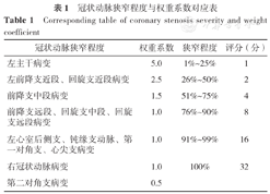 | 冠状动脉狭窄程度 | 权重系数 | 狭窄程度 | 评分(分) |