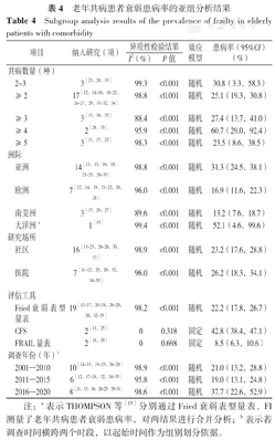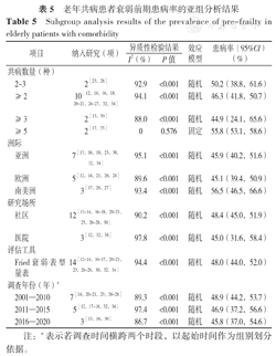 Subgroup analysis results of the prevalence of frailty in elderly patients with comorbidity