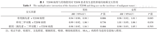 T2DM病程与药物使用对T2DM患者发生恶性肿瘤的相乘交互作用