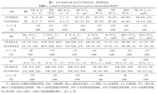 合并MAFLD组与未合并MAFLD组一般资料比较